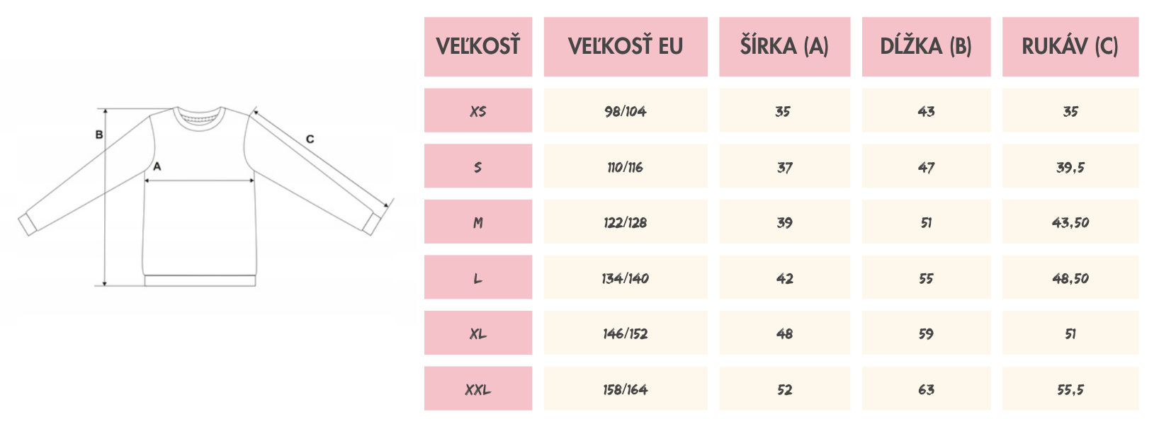 Veľkostná tabuľka je v cm / Size chart is in cm.