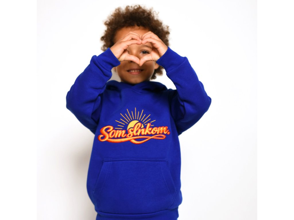 "Som slnkom." YELLOW on BLUE Signature hoodie for kids by Prince